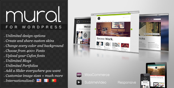 Grab this beautiful theme right now! Theme Mural: Business & Portfolio WordPress Theme from unisphere is simply good. Its a professionally designed premium WP themes for your blog. WordPress has become the CMS of choice for millions of site owners. Choosing the perfect template for your blog determines the future of your blog. Not only does a beautiful theme makes a good first impression to your user, but it helps your SEO (bouncing rate). Theme Mural: Business & Portfolio WordPress Theme info : Columns: 2, Compatible Browsers: IE7, IE8, IE9, IE10, Firefox, Safari, Opera, Chrome, Software Version: WordPress 3.5, WordPress 3.4, WordPress 3.3, WordPress 3.2, Compatible With: WooCommerce 2.0.x, WooCommerce 1.6.x, Widget Ready: Yes.