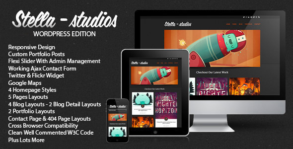 Grab this nice theme right now! Theme Stella Studios Responsive Wordpress Template from UBL is simply good. It is a professionally designed premium WordPress themes for your blog. WordPress has become the platform of choice for millions of site owners. Picking the perfect theme for your website determines the future of your blog. Not only does a good theme makes a good first impression to your visitor, but it helps your SEO (bouncing rate). Theme Stella Studios Responsive Wordpress Template info : Compatible Browsers: IE8, IE9, IE10, Firefox, Safari, Opera, Chrome, Software Version: WordPress 3.5, WordPress 3.4, WordPress 3.3, WordPress 3.2, WordPress 3.1, WordPress 3.0, Compatible With: Facebook, Widget Ready: Yes.